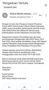” Dewan Pimpinan Pusat Aliansi Media Indonesia (DPP-AMI) resmi laporkan Kepala Dinas Pendidikan kota Pekanbaru Provinsi Riau Ismardi Ilyas, dan beberapa Kepala Sekolah jenjang Pendidikan Dasar (SD) Negeri yang ada di kota Pekanbaru, secara tertulis ke Kementrian Pendidikan dan Kebudayaan Republik Indonesia di Jakarta).” ungkap Ismail Sarlata Ketua Umum DPP Aliansi Media Indonesia, via pesan mensenger WhatsAppnya kepada media cetak,online dan elektronik. Senin (25/04/2022)