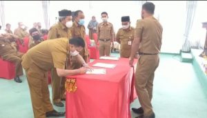 Penandatanganan Sasaran Kinerja Pegawai dan perjanjian kinerja tahun 2022. Hal ini dilakukan, untuk lebih menyempurnakan birokrasi di lingkungan Pemkab Aceh Timur. Tampak hadir dalam acara tersebut antara lain Sekda Aceh Timur dan paratamu undangan lainnya.