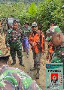 Kapten infanteri usep haerudin selaku komandan Koramil bersama anggota membersihkan material tanah batu dan kayu yang menutupi badan jalan tersebut dan di bantu oleh ormas Pemuda Pancasila, Minggu 22-01-2023.
