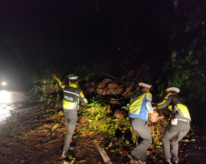 Rahawalibaruna.com | Redelong- Sebanyak 12 personel satuan lalulintas yang dipimpin oleh Kasat Lantas Polres Bener Meriah Ipda Sofyan diterjunkan ke TKP longsor yaitu di desa Gegerung kecamatan Wih Pesam pada Minggu malam pukul 22.30 WIB (22/1/2023)
