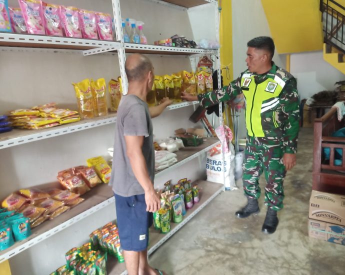 “Pengecekan sembako ini merupakan kegiatan rutin yang dilakukan oleh Babinsa bertujuan untuk mengantisipasi terjadinya lonjakan harga bahan pokok yang dilakukan para pedagang dan memastikan ketersediaan sembako usai lebaran.