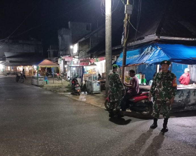 Aceh Tamiang – Personel Koramil 04/Bendahara bersama masyarakat melaksanakan patroli bersama untuk menciptakan kondisi keamanan di wilayah Kecamatan Bendahara, Kabupaten Aceh Tamiang. Rabu (07/10/2025).