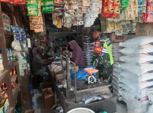 ACEH TAMIANG – Babinsa Koramil 08/Rantau Serma Wakidi ke Kios-kios sembako untuk mengecek harga bahan pokok dalam rangka mendukung program ketahanan pangan serta mencegah inflasi, bertempat di Pajak Pagi Desa Rantau Pauh, Kecamatan Rantau, Kabupaten Aceh Tamiang. Selasa (28/10/2025)
