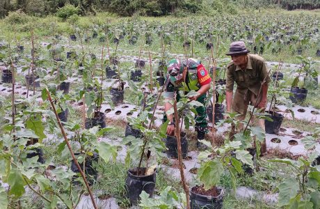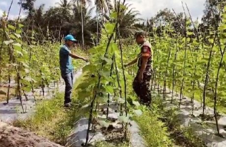 Babinsa Komsos Dengan Petani Kacang Panjang, Dorong Motivasi Dan Semangat