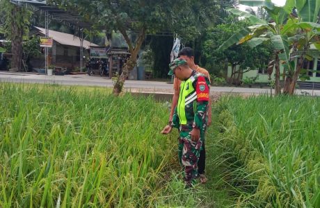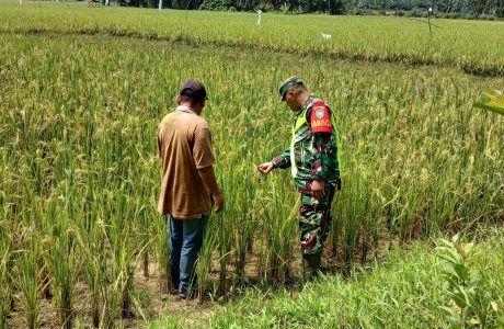 Babinsa Koramil 04/Bdh Dampingi Petani Pantau Perkembangan Tanaman Padi