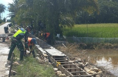 Manunggal TNI Bersama Rakyat, Babinsa Koramil 09/Banda Mulia Bantu Petani Bangun Saluran Irigasi