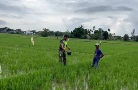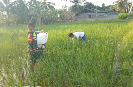 ​Cegah Hama Tanaman, Sertu Indra Rusmana Bantu Petani Semprot Padi