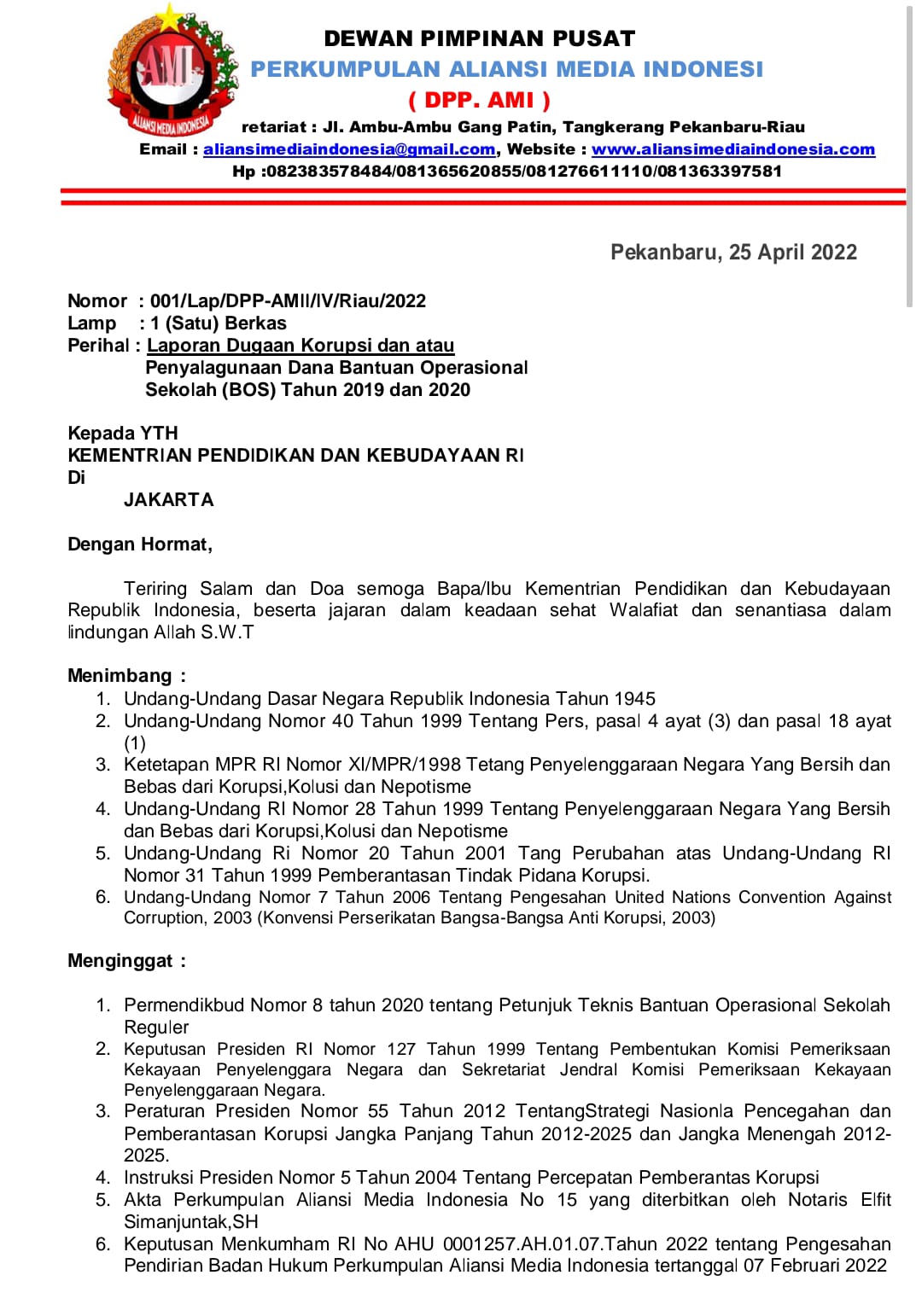 Kepala Dinas Pendidikan dan Lima Kepala Sekolah SD Negeri Pekanbaru,Resmi Dilaporkan ke Mapolda Riau dan Kejari Pekanbaru