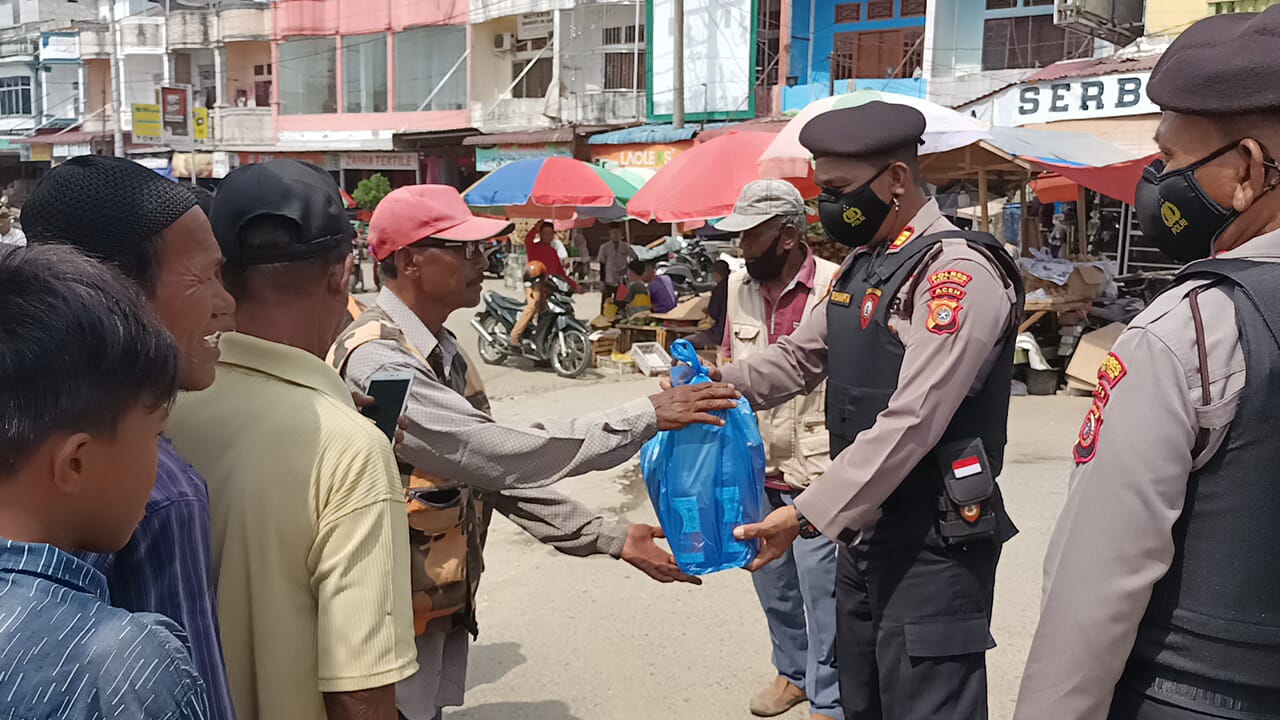 Pimpin Wilayah di Bulan Puasa, Kasat Samapta Polres Aceh Timur Bagikan Sembako Kepada Warga